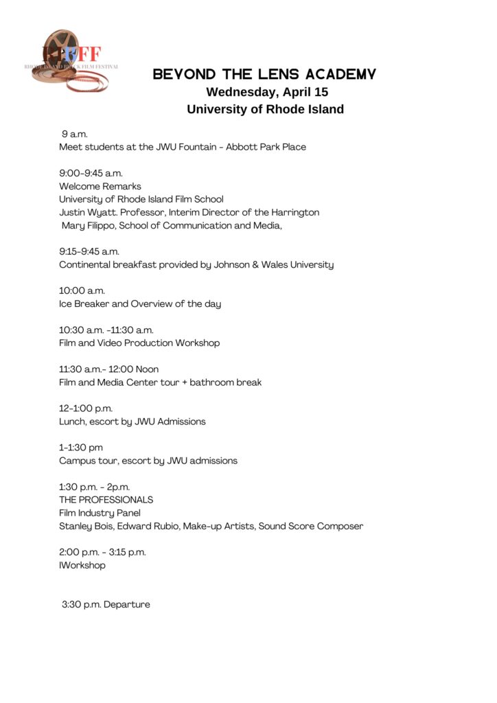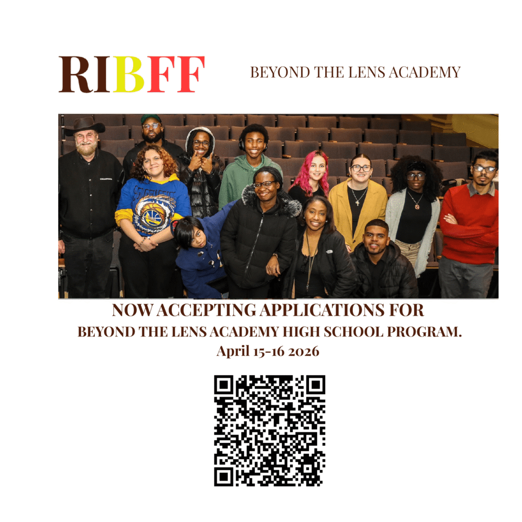 The Rhode Island Black Film Festival (RIBFF) launched Beyond the Lens Academy in Spring of 2022. After months of planning in partnership with Johnson & Wales University College of Arts & Sciences the first class of high school students participated in the two day program. Students from Classical High School, Providence Career & Technical Academy, LaSalle Academy, Newport Vocational and Portsmouth High School spent two days with the filmmakers, videographers, Rhode Island Office of Film & Television and IATSE local union to learn the careers and areas of study as a film major. The Rhode Island Black Film Festival congratulates our inaugural class of students.